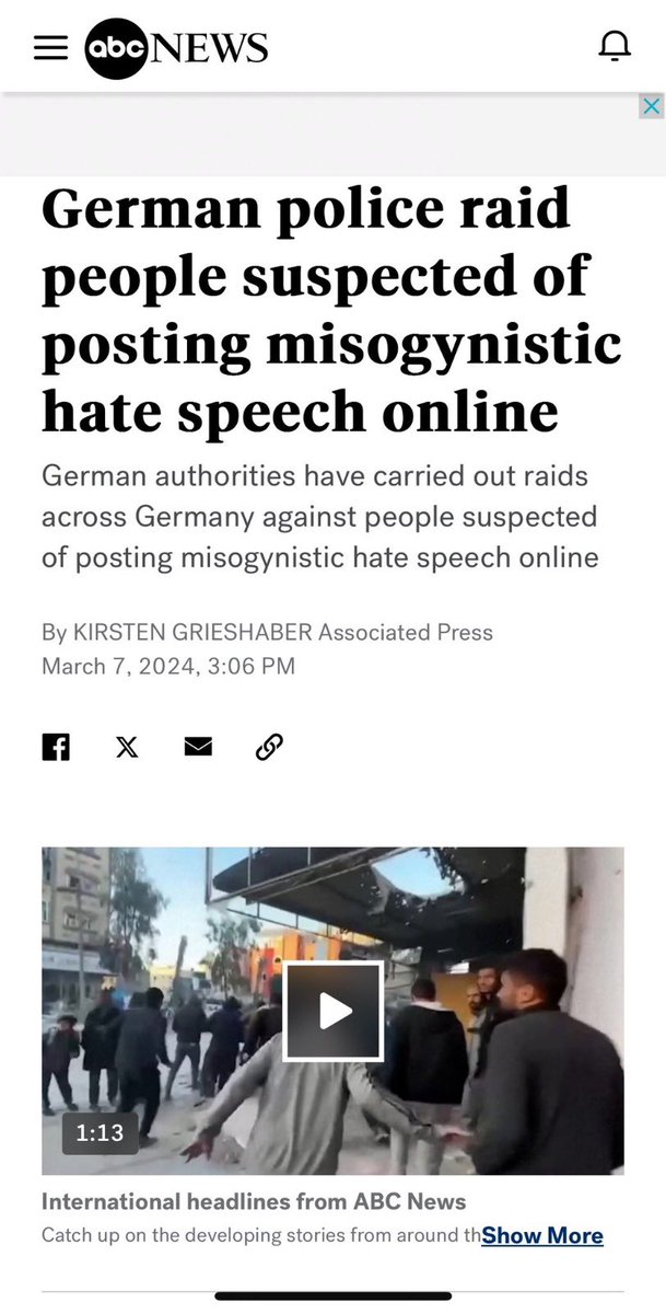 الشرطة الألمانية تداهم منازل شاتمي النساء بمعرفات وهمية في وسائل التواصل، المداهمات حدثت في جميع أنحاء ألمانيا لأشخاص يشتبه بأنهم نشروا خطابات معادية ضدهن أو شجعوهن على إرسال صور عارية.
